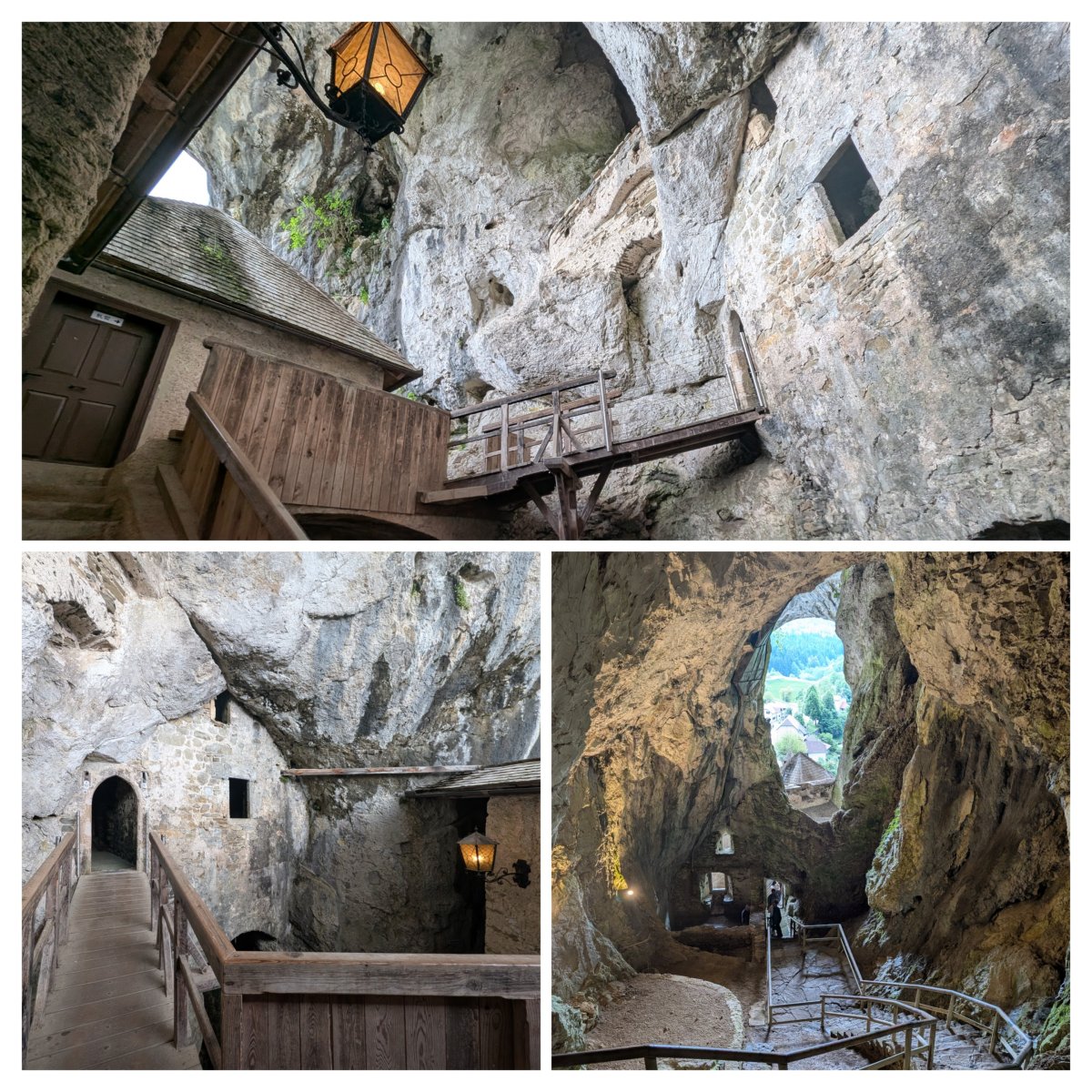 Drei Stunden später bin ich in Predjama und sehe die imposante Höhlenburg. Ich besorge mir ein Ticket, deponiere das Gepäck und besichtige die Burg. Mit meinem Handy als Audioguide erfahre ich spannende Geschichten zur Burg und dem Leben darauf. So z.B., dass der berühmteste Burgherr, der Raubritter “Erasmus”, einer Belagerung von mehr als einem Jahr standhielt und die Belagerten zum Spott mit Esswaren bewarf. Er hatte nämlich einen Geheimgang hinter den Felsen gebaut, wodurch er die Burg mit Nahrung von den umliegenden Dörfern versorgte.