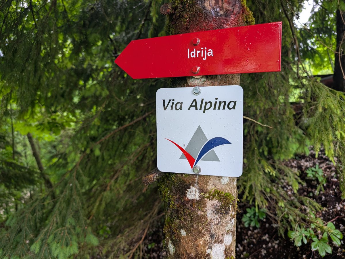 Nach dem Frühstück starte ich voller Vorfreude in den Tag. Der heutige Weg führt mich über eine Forststrasse nach Slowenien. Der Weg ist so unscheinbar, dass ich sogar den Grenzübertritt nicht bemerke. Erst nach zwei Kilometern komme ich an einem alten Kontrollposten vorbei. Kurz später entdecke ich ein erstes Hinweisschild, das auf die Via-Alpina verweist.