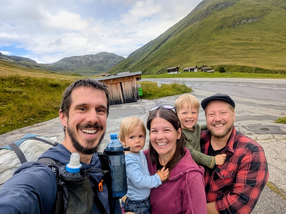 Kurz nach dem Start habe ich eine ungelesene Nachricht meines Freundes Marco auf meinem Handy. Er ist übers Wochenende mit seiner Frau Linda und den beiden Kindern in die Berge gefahren. Ich erfahre, dass er nur eine knappe Autostunde von meinem heutigen Tagesziel, Juf/Avers, entfernt wäre und ein kurzes Treffen, heute am Schweizer Nationalfeiertag, bei ihnen gut in den Tag passen würde. Wir bleiben vorerst dabei, dass ich mich gegen Mittag nochmals bei ihm melde, um Details telefonisch zu besprechen.