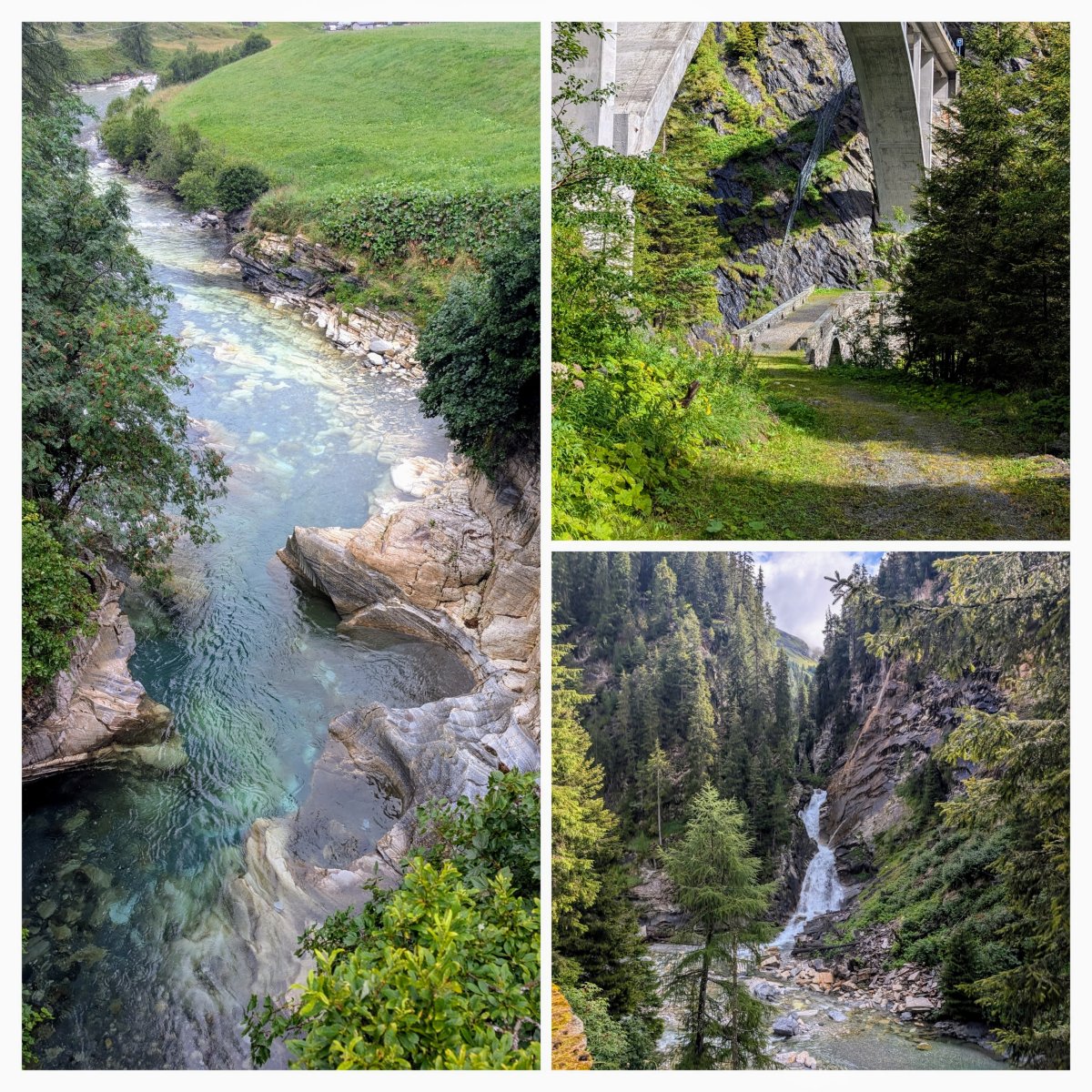 Der Weg bergab führt mich auf alten Säumerwegen durchs Averstal hinab, immer entlang dem Hinterrhein und in Richtung Rofla- und Viamalaschlucht