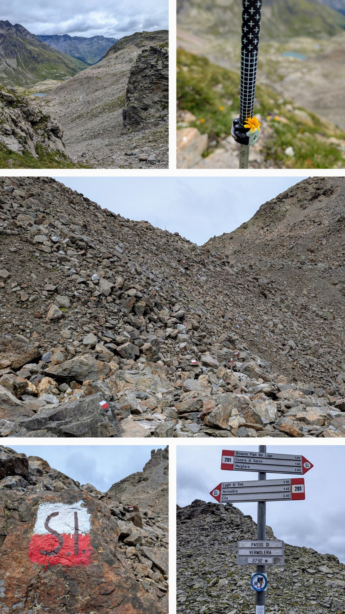 Gestärkt geht's zwanzig Minuten später weiter. Der Weg führt mich über kleine Geröllfelder und bei leichtem Wind hoch auf den “Passo di Volmera”.
