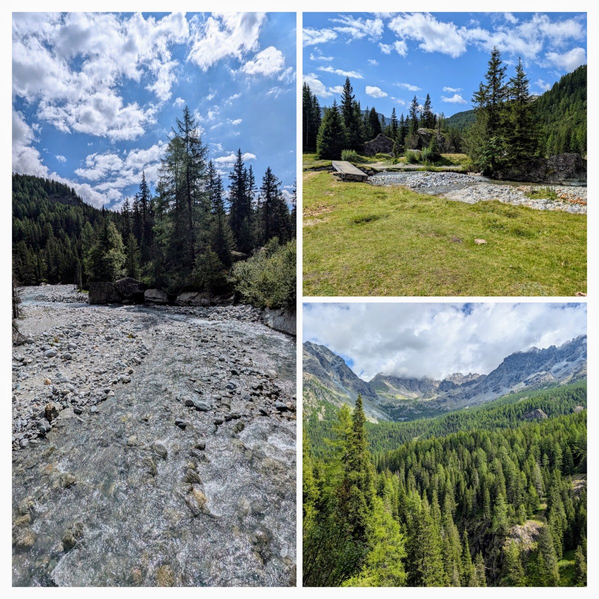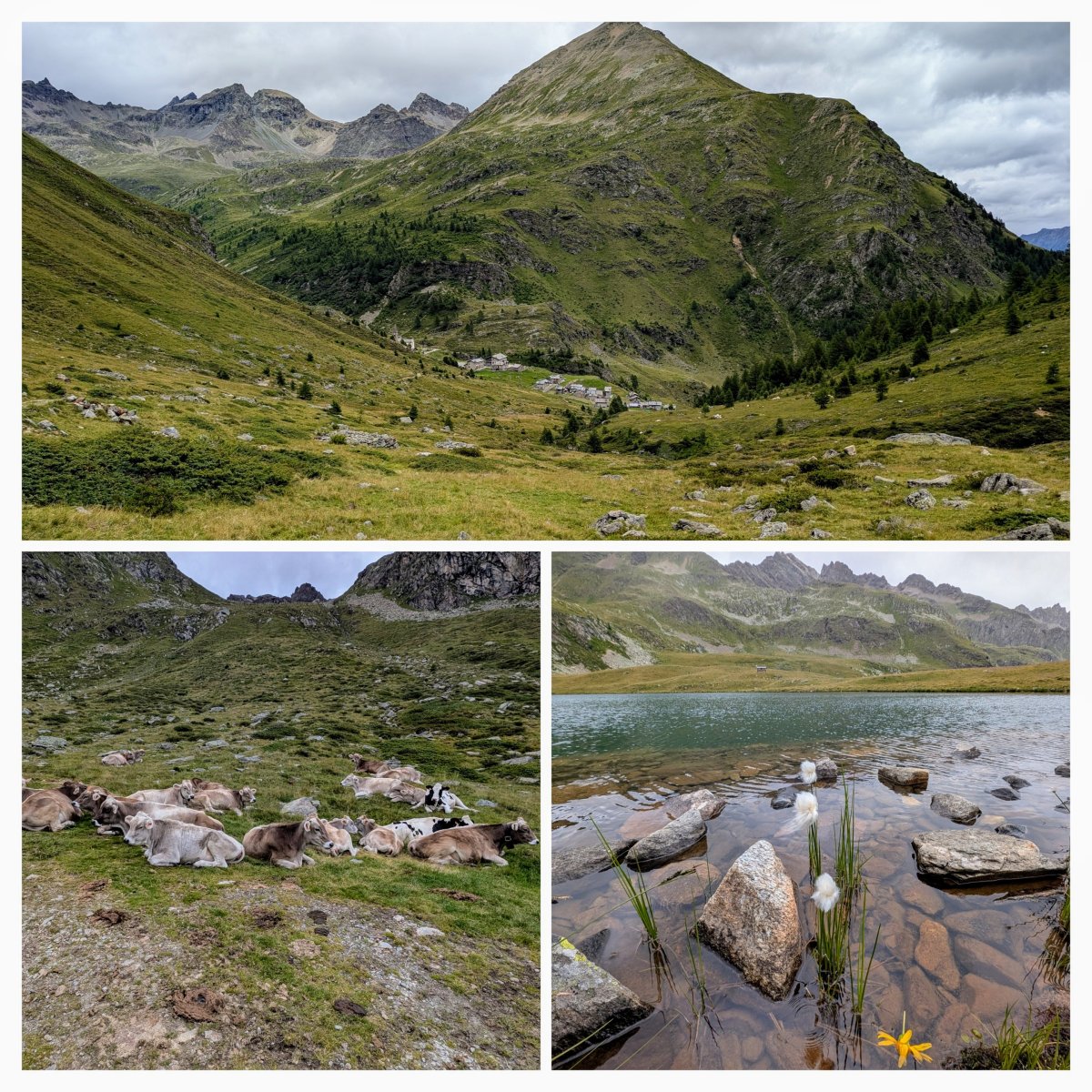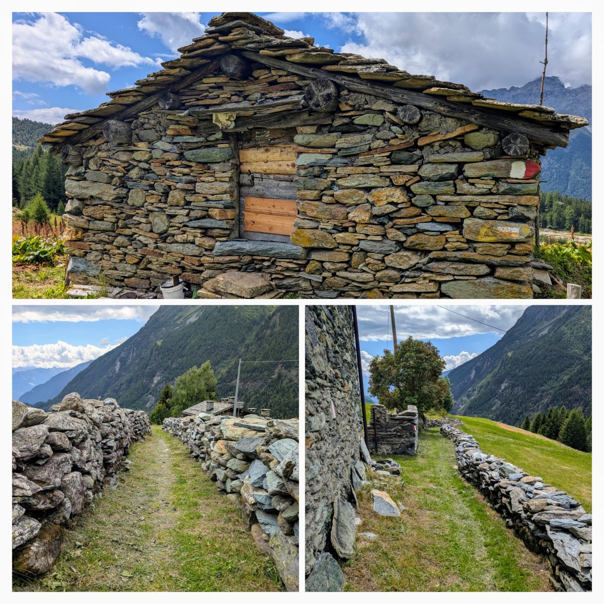 Später wird der Weg wieder etwas weniger romantisch und führt mich über eine Skipiste zur nahegelegenen Sesselliftstation hinauf. Auf der anderen Seite geht's wieder talwärts, hinab nach Chiareggio, vorbei an verschiedenen Alphütten sowie über alte Säumerwege.