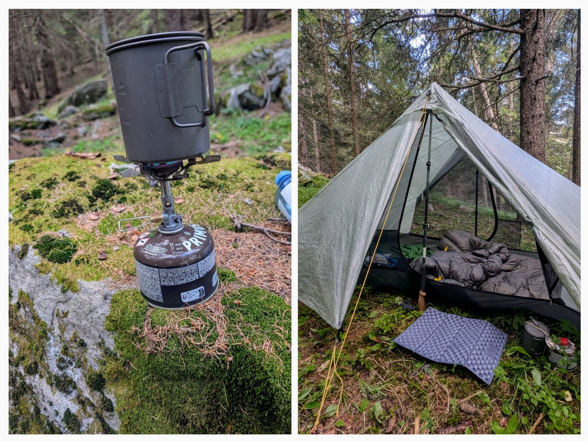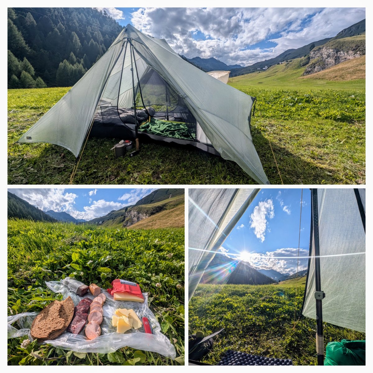 So koche ich mir mein Nachtessen, telefoniere mit Freunden und baue kurz vor Sonnenuntergang mein Zelt auf.