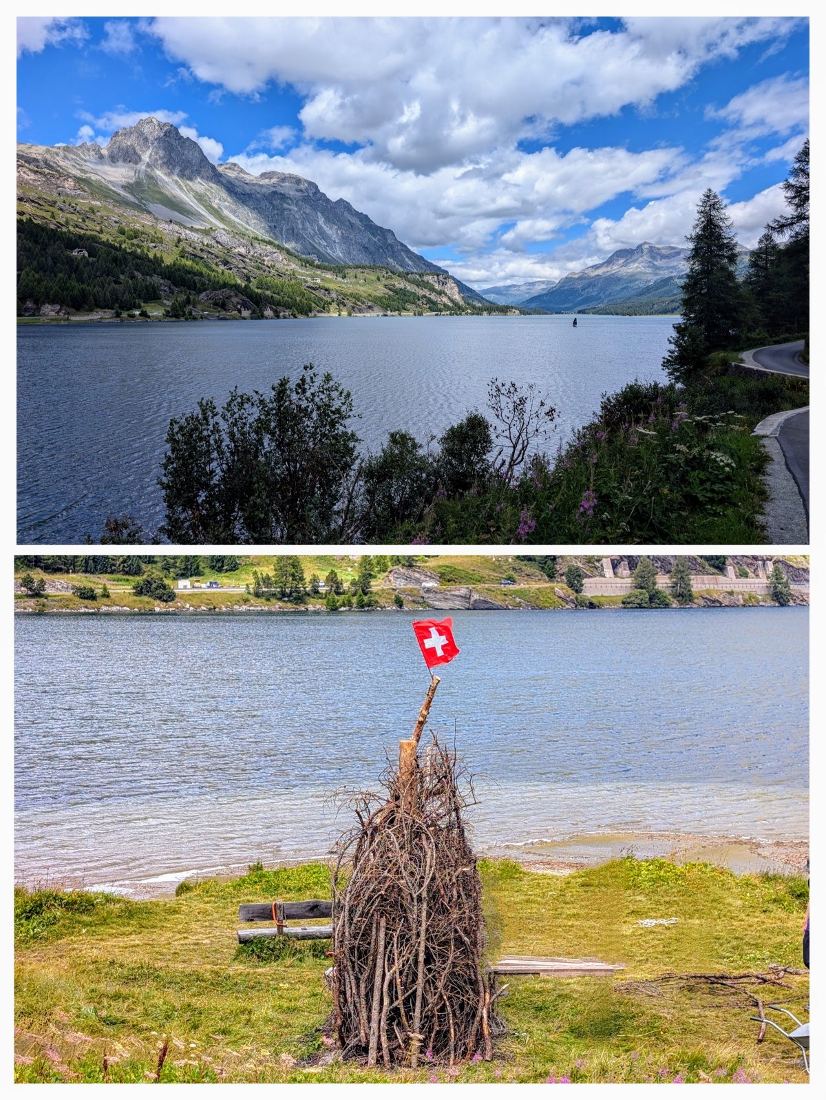 Ich baue mein Zelt auf, richte mich ein und erkundige später die Umgebung. Dabei entdecke ich, dass hier bereits fleissig das 1. August Feuer für den morgigen Feiertag vorbereitet wird. Wie ich später erfahre, tun dies jeweils die Stammgäste.