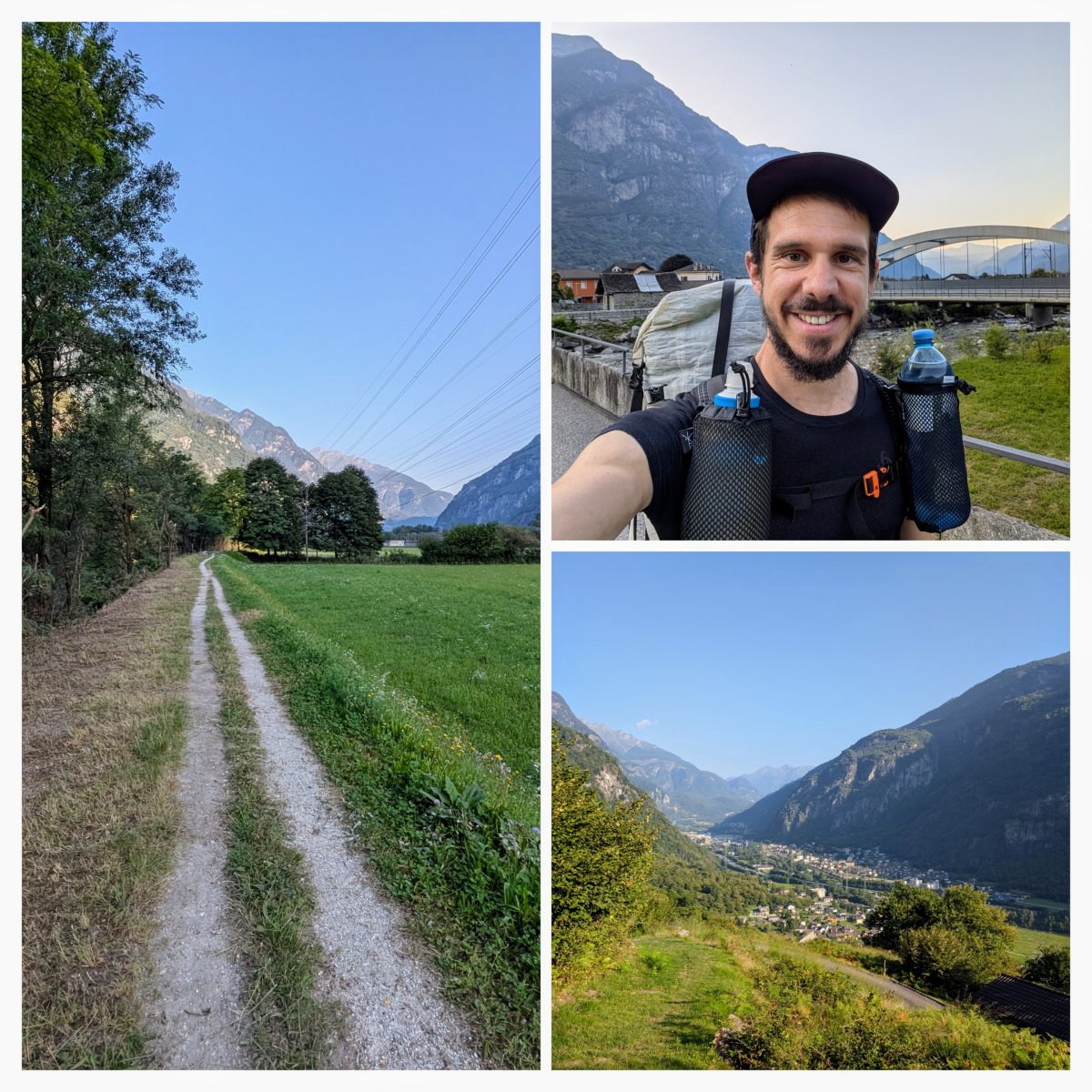 Kurz nach halb sieben erscheine ich als erster Gast beim Frühstück und esse wieder sehr ausgiebig. Danach checke ich aus und verlasse motiviert Biasca in Richtung Leventina Tal.