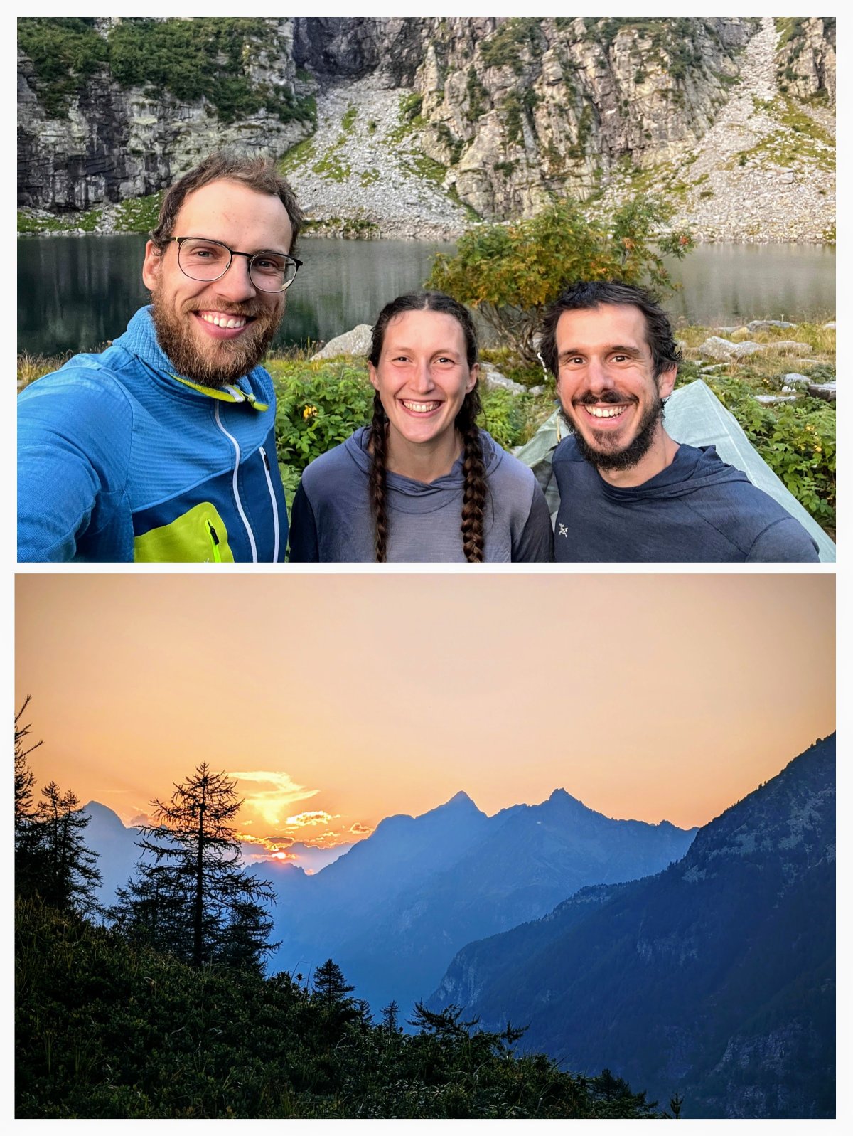 Ich schreibe ihr, wo ich mein Nachtlager aufgeschlagen habe und koche mir mein Abendessen. Kurz darauf treffen sie auch schon ein, wir plaudern und die beiden gehen im See baden. Sie rufen mir zu “Sascha, kommst du auch rein?” Ich bin etwas zurückhaltend, da heute die Bäche so kalt waren und entscheide mich, nach einem kurzen Temperaturcheck, doch dafür. Die Erfrischung tut richtig gut und ich wäre wohl ohne die beiden nicht baden gegangen.