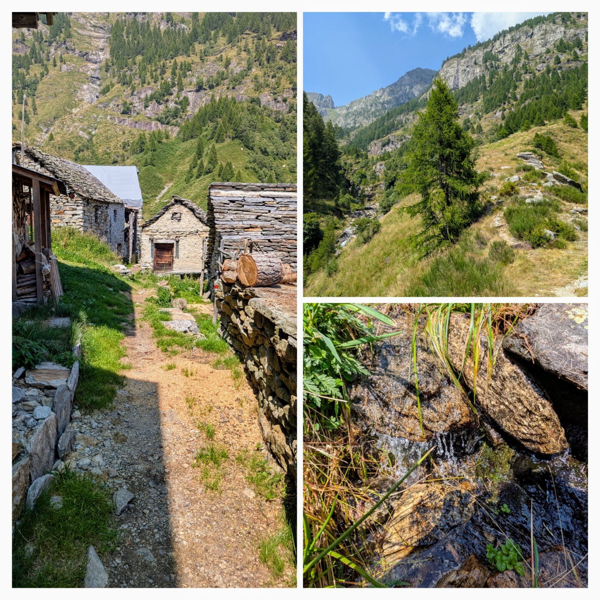 Ich steige auf, wandere über alte Säumerpfade, vorbei an historischen Ziegenställen und gönne mir circa drei Kilometer vor San Carlo wieder eine Abkühlung im Fluss. Denn auch heute ist es wieder, wie die letzten Tage, sehr heiss.