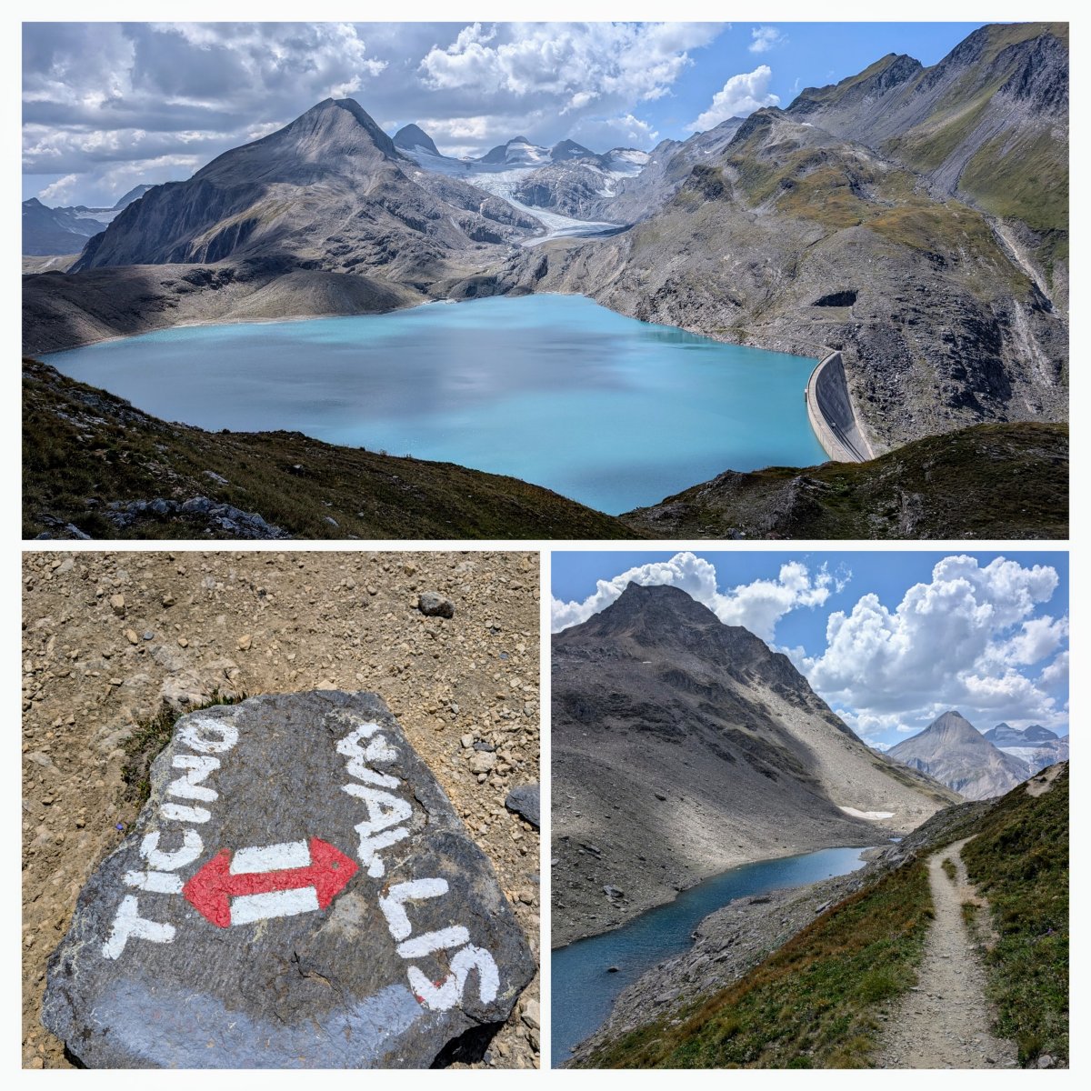 Mein Weg führt mich nicht direkt auf den Nufenenpass, sondern links am Nufenenstock vorbei auf den Griespass. Rund dreihundert Höhenmeter weiter oben habe ich eine wunderbare Weitsicht auf den Griessee und den zugehörigen Gletscher. Ich überquere die Grenze ins Wallis, lege eine Pause ein und esse etwas.