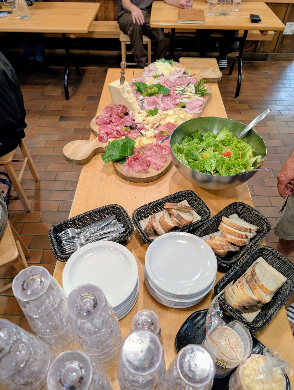 Fünfundvierzig Minuten später hat der Regen nachgelassen und das Gewitter sich etwas verzogen. Wir wagen einen Versuch und steigen sehr, sehr zügig noch die verbleibenden zweihundert Höhenmeter zur Hütte auf und können dort auch gleich unsere Betten beziehen. Später beim Abendessen werden wir mit leckeren Speisen verwöhnt und können den Abend gemütlich im Trockenen ausklingen lassen.