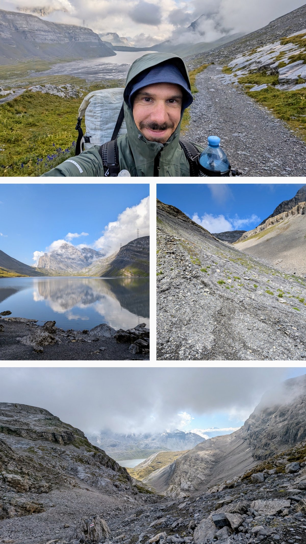 Oben auf der Gemmi weht ein kühler Wind, schnell ziehe ich mir meine Jacke über und steige hinter dem Gemmipass zum Daubensee ab. Trotz des touristisch gut erschlossenen Gemmipasses, bin ich alleine unterwegs. Ich laufe entlang dem See bis ans andere Ende, von wo ich wieder aufsteige und den Daubensee in westlicher Richtung verlasse.