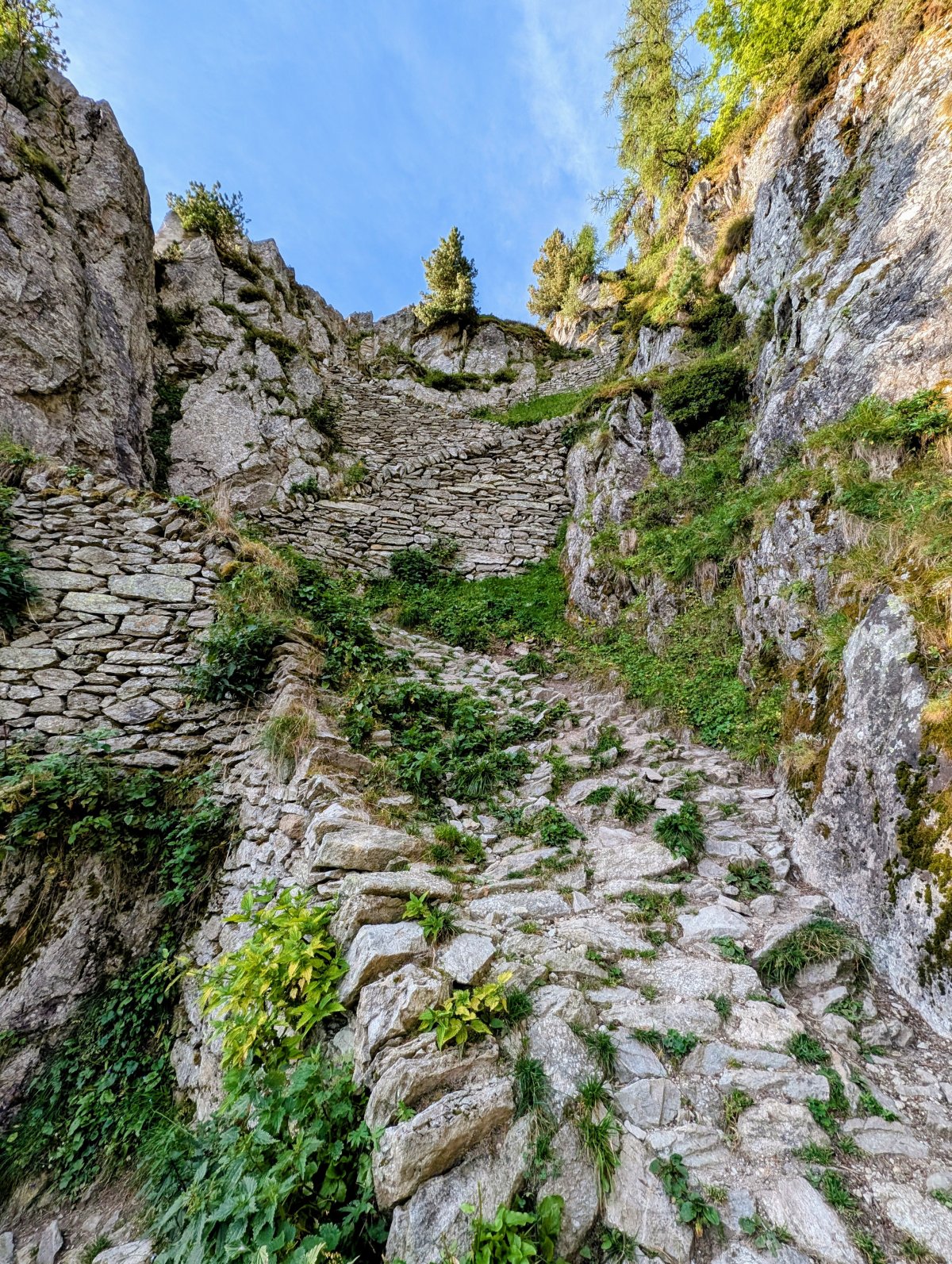 Die wilde Pflasterung, die dabei an vielen Orten wie beispielsweise an alten Säumer- oder alpinen Pfaden vorhanden ist, wird hier im Wallis “Bicki” genannt. Sie dient der Befestigung viel begangener Wegen und soll davor bewahren, dass der Weg talwärts weggeschwemmt wird.