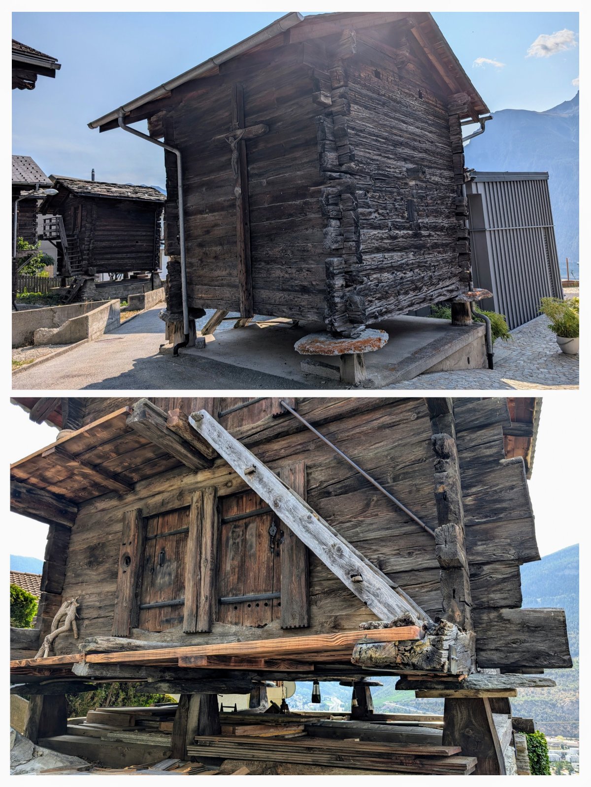 Oben in Belalp geht's gemächlich bergab nach Mund. Vorbei an den ersten Suonen bis zu den typischen Kornstadel oder auf gut Walliserdeutsch “Chooruspichär”. Dies sind alte Kornspeicher, welche nicht direkt auf dem Boden stehen und so vor Feuchtigkeit und Nagetieren schützen. Besonders hervorstechend sind dabei die Mäuseplatten "Plaana", die für die Nagetiere ein unüberwindbares Hindernis darstellen.