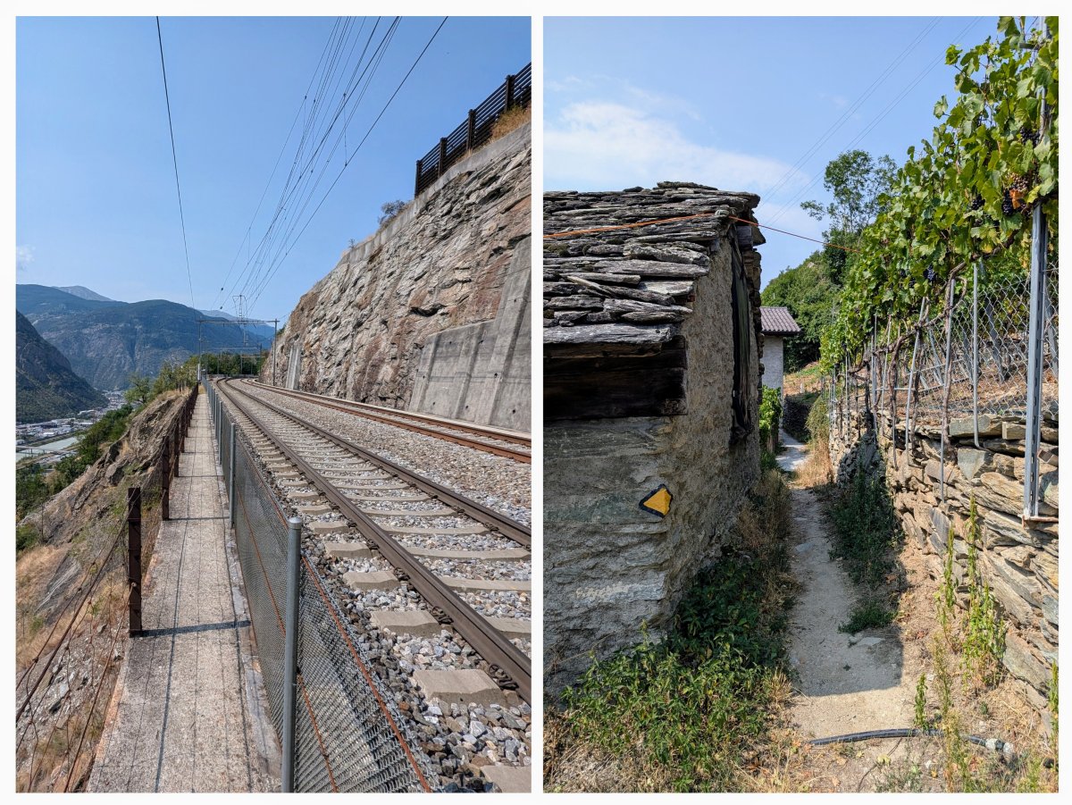 Etwa zwei Stunden vor Visp kreuze ich die Lötschberg-Südrampe der Bahn und laufe an den ersten Rebbergen vorbei.