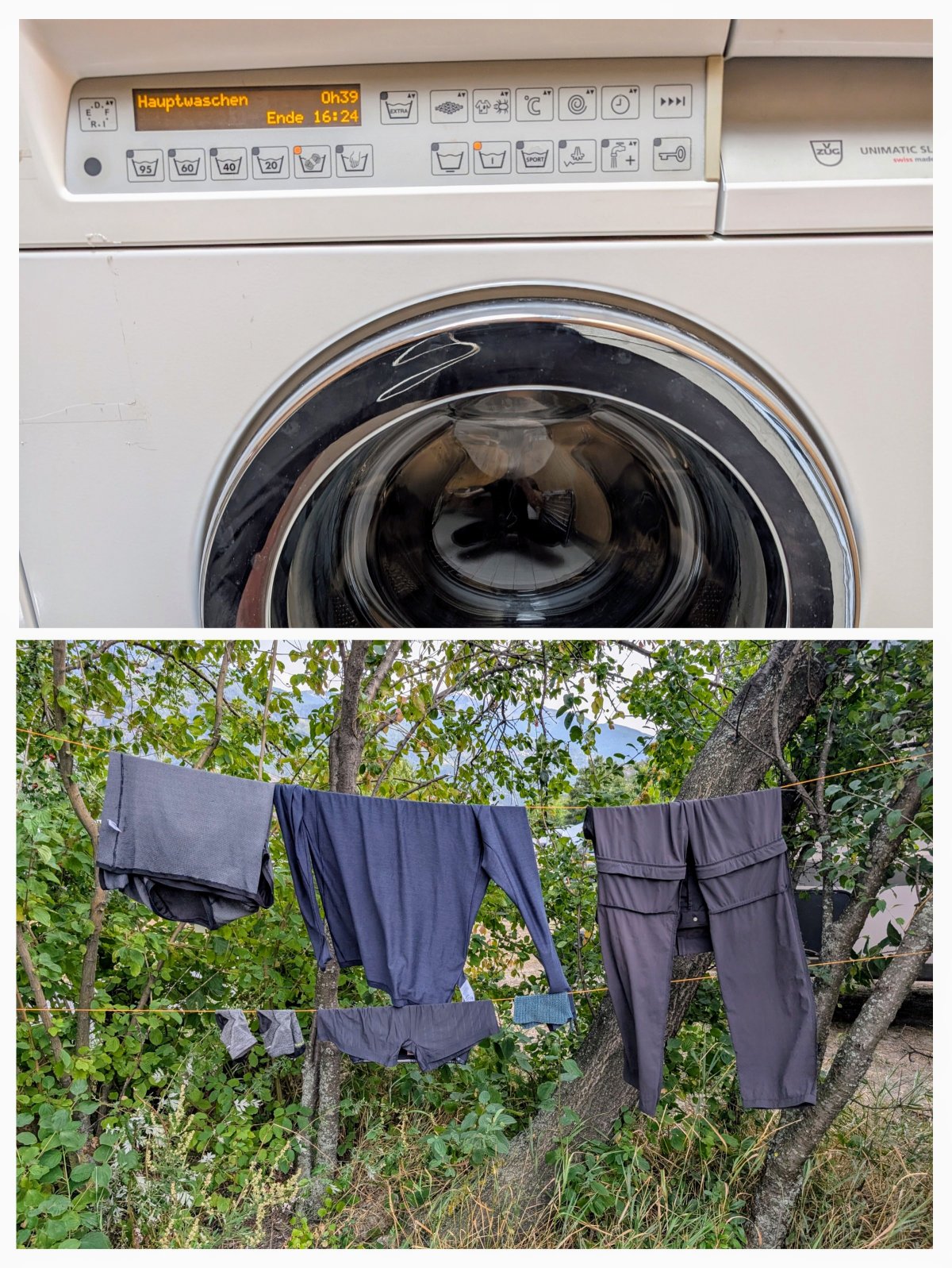 In der Mitte des Nachmittags treffe ich in Visp ein, gehe kurz einkaufen und richte mich auf dem Campingplatz ein. Ich wasche meine Kleider, hänge sie zum Trocknen an eine selbstgebaute Wäscheleine, geniesse den Nachmittag und schreibe an meinem Blog. Es weht ein warmer Wind und so ist meine Kleidung schon nach nur dreissig Minuten trocken.