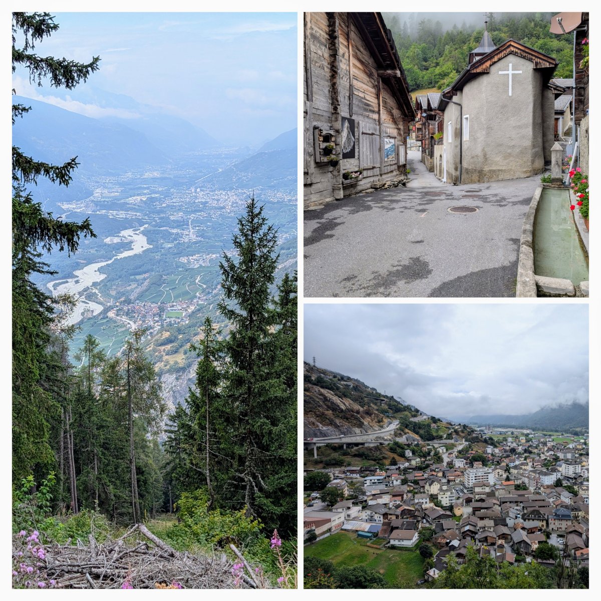 Nach einer verregneten Nacht und einem gemütlichen Frühstück ziehe ich um acht Uhr los in den alten Dorfkern von Gampel. Bevor ich dort aufsteige, treffe ich unterwegs per Zufall nochmals Schosi. Er erkundigt sich, wohin's heute geht und ich sage ihm “via Bratsch nach Guttet und dann über Albinen hoch nach Leukerbad.” Daraufhin meint er, dass dies die schönste Route sei. Wir verabschieden uns und ich verlasse das Rhonetal bergauf.