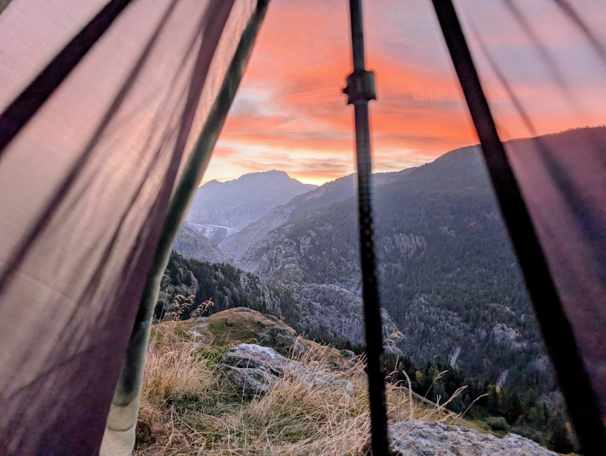 Nach dem Aufbau meines Zeltes treffe ich Schosi, den Platzwart. Ein sympathischer, älterer Herr mit weissem Bart, Brille und farbig-gestrickter Wollmütze. Wir kommen ins Gespräch und ich finde heraus, dass hier früher ein riesiger Campingplatz war. Er erzählt mir, wie es zur Schliessung dieses Campings kam. Nun ist dieser nur noch ein Stellplatz und er der Platzwart. Wir plaudern eine ganze Weile weiter und er erzählt mir im authentischen Walliser-Dialekt, vieles über die Berge, das Wallis, die Via-Alpina und dass er diese auch mal wandern möchte. Zwischendurch muss ich bei einigen Wörtern doch noch nachhaken, was er genau meint, denn nicht alle Walliser-Wörter sind mir geläufig. Kurz bevor es zu regnen beginnt, verabschieden wir uns und er zieht weiter.