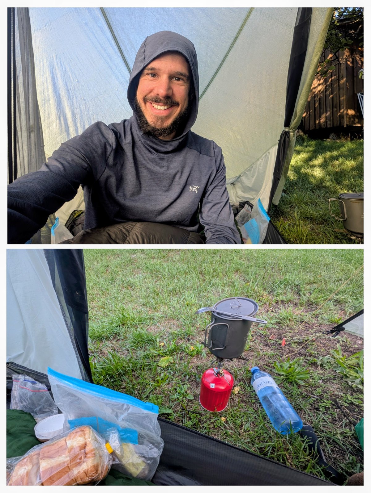 Ich koche mir mein Abendessen und ziehe mich kurz vor Sonnenuntergang ins Zelt zurück und schlafe bald ein.