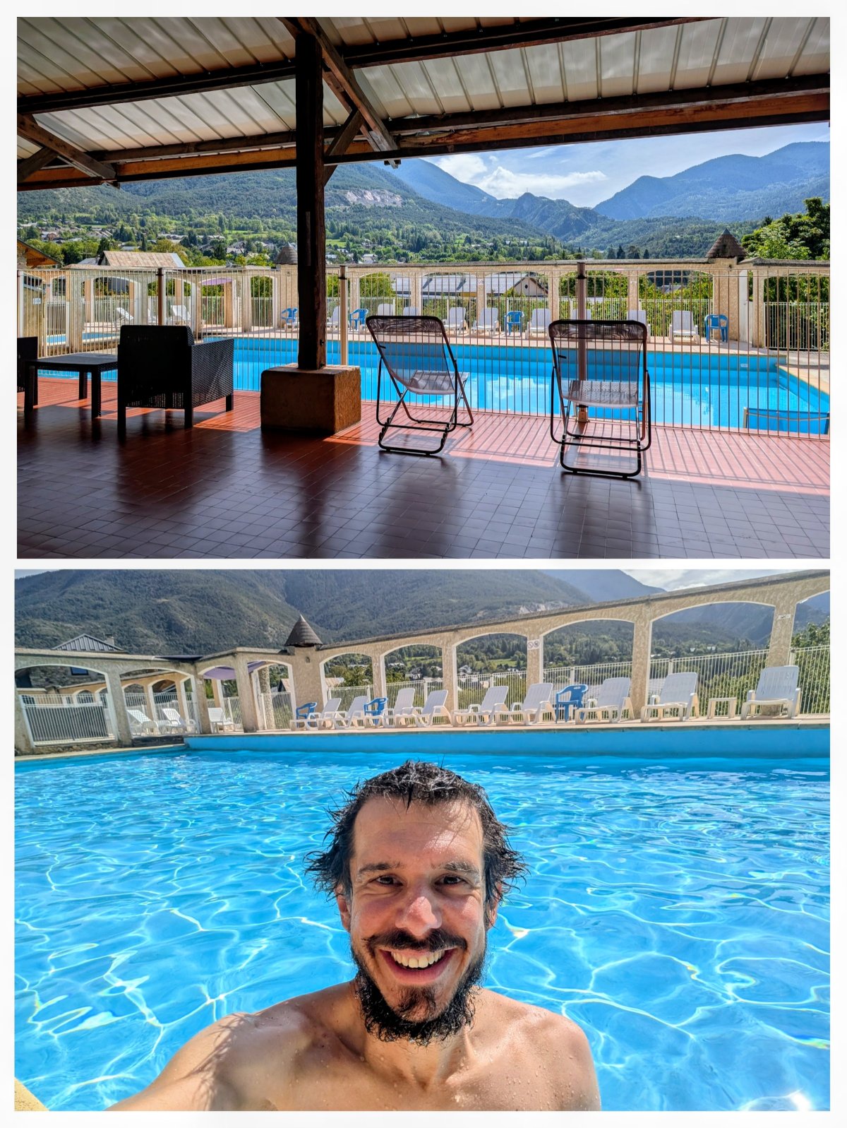 Zurück beim Camping packe ich den Rucksack und geniesse den Rest des Vormittags beim Hotelpool und schreibe an meinem Blog. Kein Mensch ist da und so habe ich den ganzen Poolbereich für mich alleine. Gegen Mittag gönne ich mir sogar noch eine Abkühlung, ziehe ein paar Runden und plansche herum.