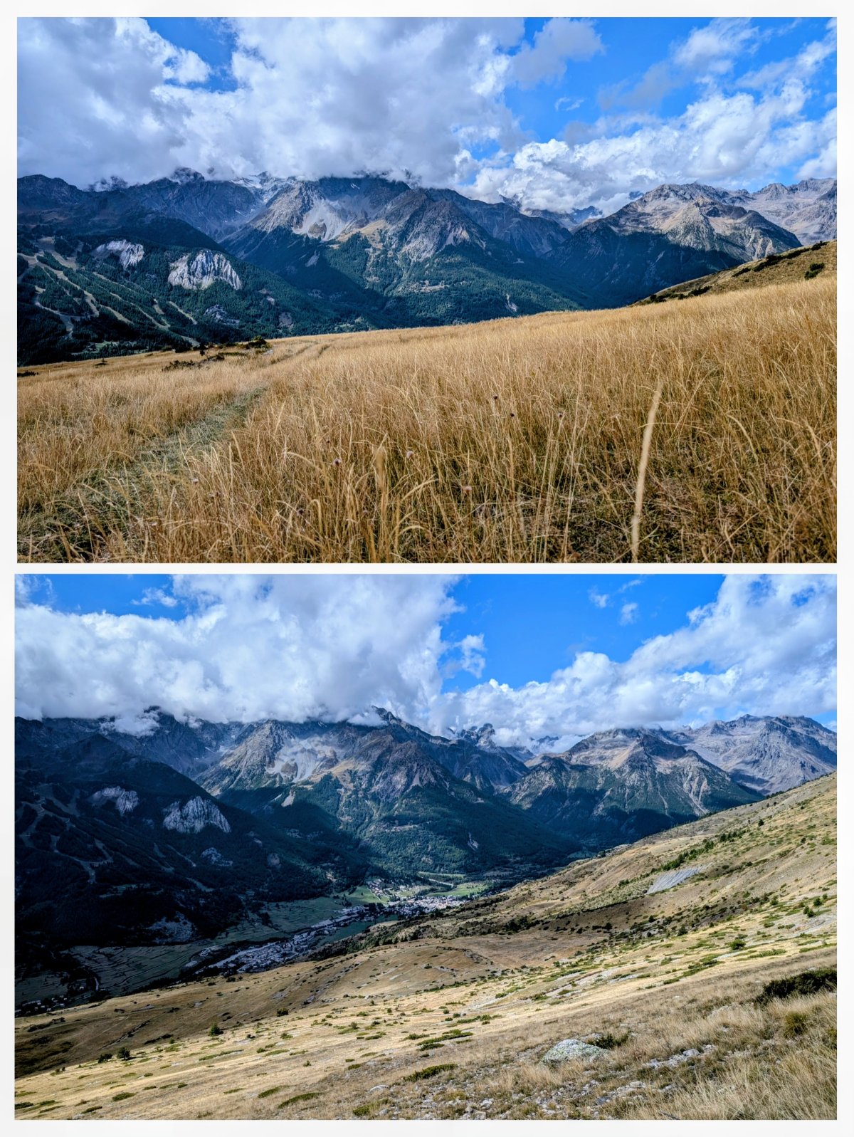 Über verdorrte Wiesen mache ich mich gestärkt auf den Weg ins Tal. Der sanfte Abstieg dauert rund drei Stunden und führt mich immer näher an “Le Monêtier les Bains” heran, wo ich diese Nacht auf einem Campingplatz übernachten werde. Denn auch diese Nacht und die Darauffolgenden werden kalt. Sogar hier im Tal, auf tausend fünfhundert Meter über Meer, wird es diese Nacht knappe vier Grad kalt.