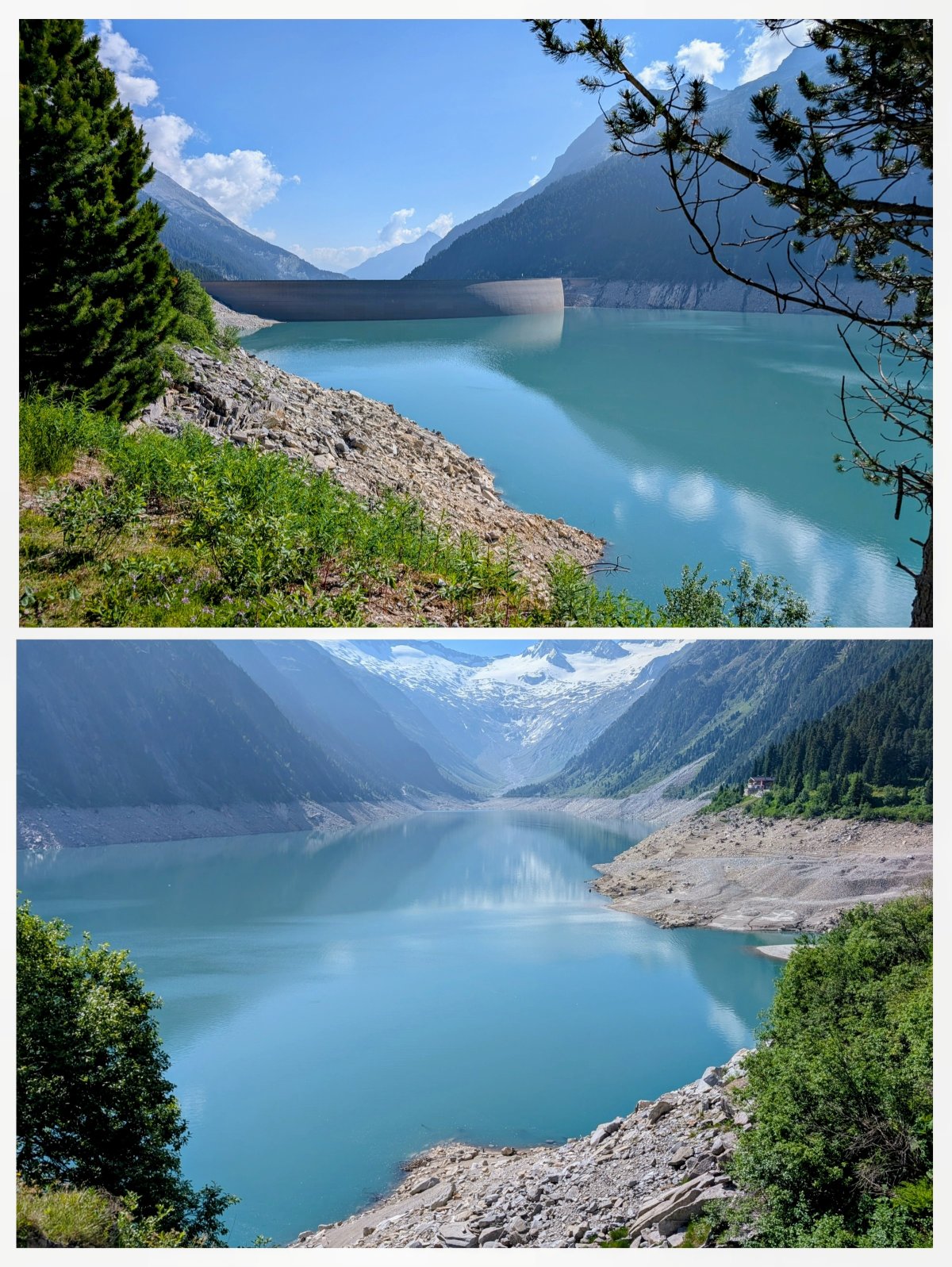 Mein Weg führt mich direkt neben der Staumauer des Schlegeisspeichers hinunter bis unterhalb der Staumauer und dann weiter entlang des Zamser Bach, immer tiefer ins Zillertal hinab.
