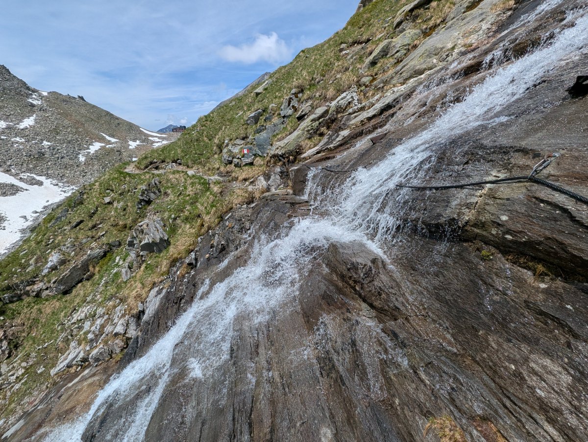 Nach einer kurzen Mittagspause bei der Edelrauthütte geht's weiter auf dem Pfunderer-Höhenweg. Doch vorher erkundige ich mich, auf Rat von Roland, über die Bedingungen zur Überquerung der Gaisscharte. Dies ist auf meinem Teil des Höhenweges die gefährlichste und anspruchsvollste Stelle.