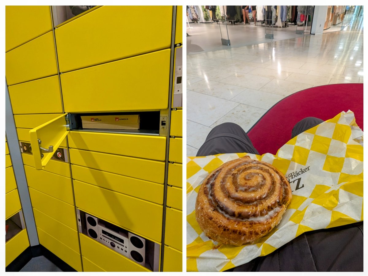 Als nächstes muss ich mein Paket abholen, welches ich vorherige Woche hierher zu dieser Paketabholstation umgeleitet habe. Alles verläuft reibungslos und ich kann zufrieden mein Vollmilchpulver-Nachschub für mein morgendliches Müesli entgegennehmen. Im Anschluss gönne ich mir im gekühlten Einkaufscenter daneben einen "zVieri".