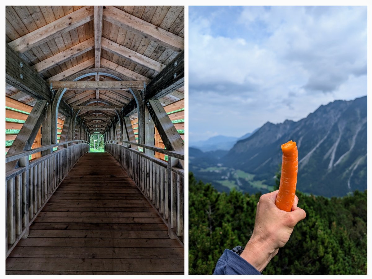 Unterwegs gönne ich mir eine Pause und esse mein erstes “Rüebli” seit dem Start meiner Via-Alpina. Denn einkaufen konnte ich es im Einzelverkauf erst hier in Deutschland, vorher gab es diese jeweils nur im Kilopack und wie ihr wisst ist das gewichtstechnisch und energietechnisch nicht optimal 😉 So lasse ich es mir schmecken und ziehe weiter.