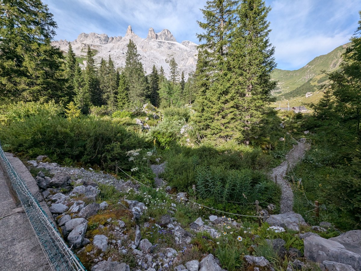 Die Zeit und das Wetter sind auf unserer Seite und lassen uns gemütlich absteigen. In Gargellen steuern wir zuerst auf den Dorfladen zu. Doch der öffnet erst um fünfzehn Uhr wieder. So laufen wir zuerst zum gebuchten Wellness-Hotel, um dort einzuchecken. Denn ab hier verbringen wir zusammen noch zwei Nächte, bevor Doris nach Hause fährt und ich weiter wandere.